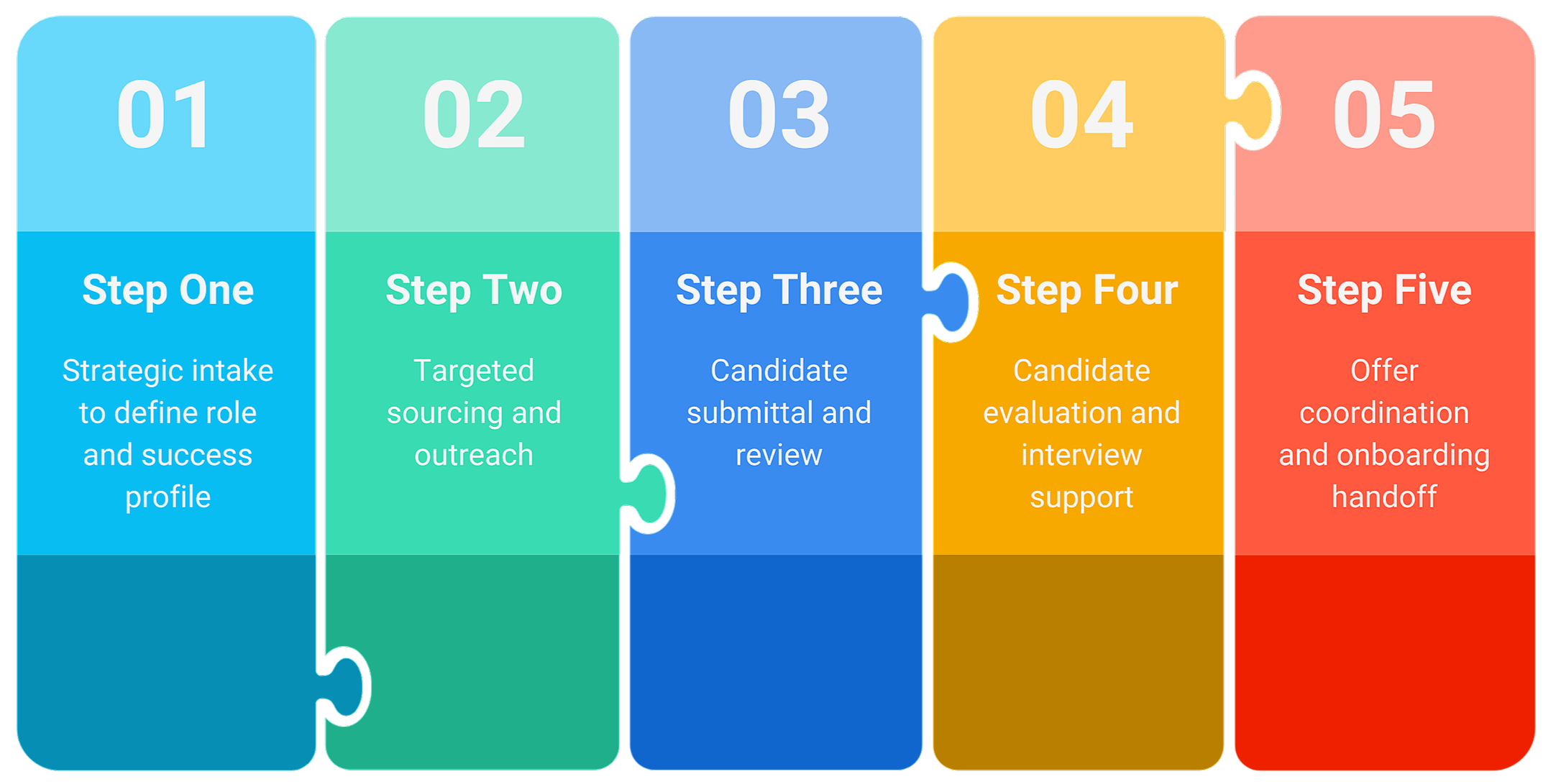 A focused search service to fill specific roles with qualified, vetted candidates. CWIK Talent Services manages the full hiring process from intake to offer, ensuring speed, clarity, and long-term fit. This recruitment service is structured per position.